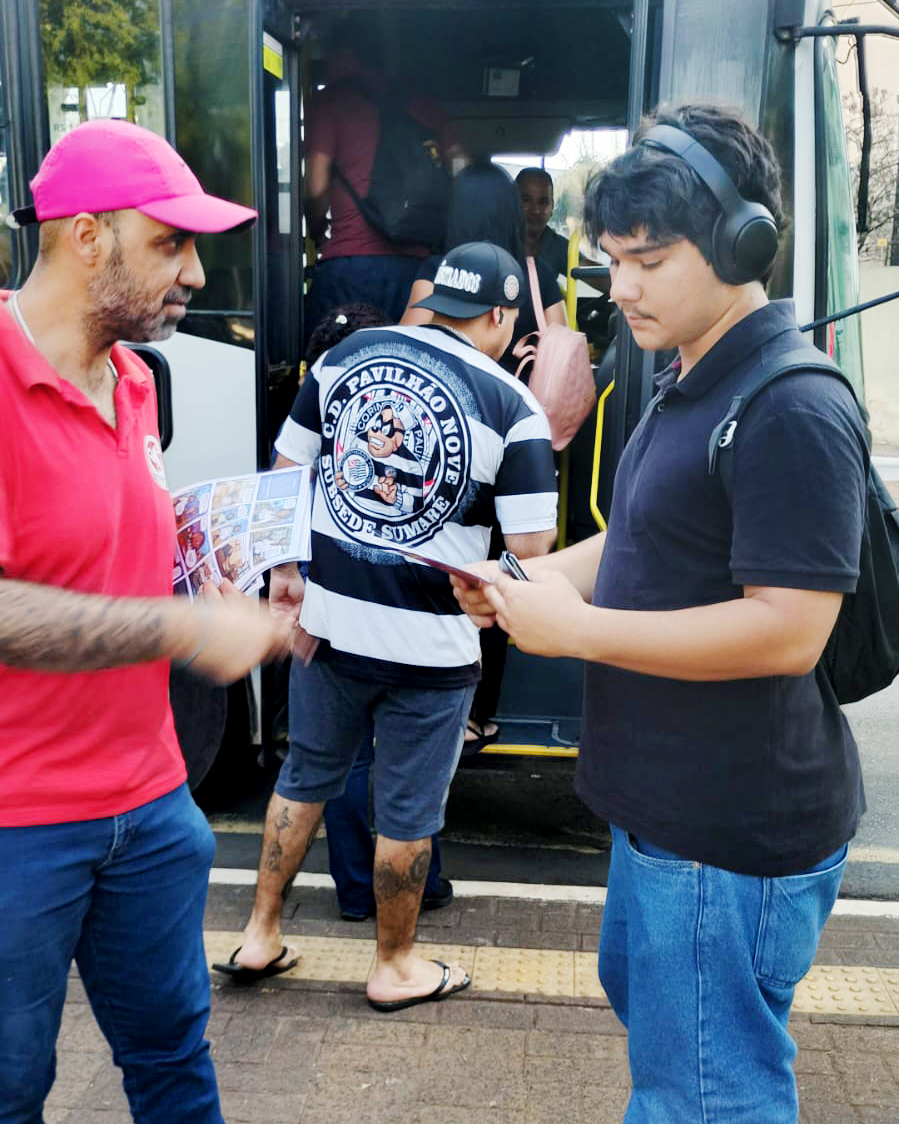 A diretoria do STSPMP realizou na última sexta, dia 5 de dezembro, em frente ao ponto de ônibus dos Bombeiros, a distribuição de material impresso com uma história em quadrinhos que narra os perigos da terceirização e do sucateamento do serviço público.