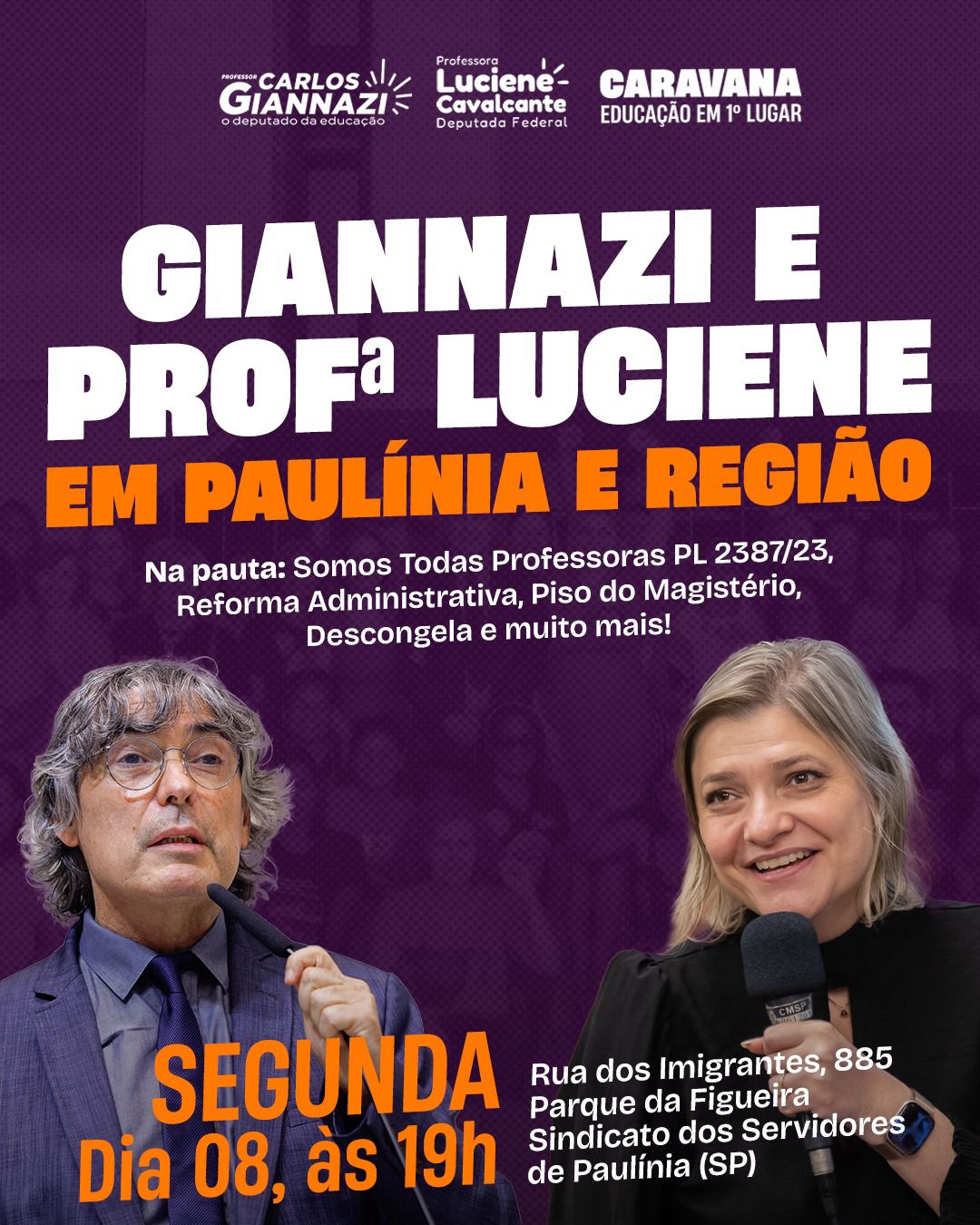 A luta pela valorização do Ensino público e dos seus profissionais ganha novo fôlego em Paulínia. Na próxima segunda, 8 de dezembro, às 19 horas, a sede do Sindicato recebe a “Caravana Educação em 1º Lugar”, com a presença dos deputados Professor Carlos Giannazi e Professora Luciene Cavalcante. A iniciativa se propõe a um diálogo franco e mobilizador com a base, transformando o espaço sindical em um palco privilegiado de escuta e articulação política. Trata-se de uma oportunidade única para alinhar as reivindicações da categoria com a atuação parlamentar, construindo pontes essenciais para a defesa intransigente da escola pública.