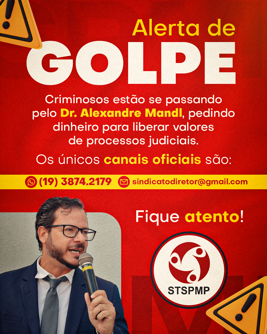 🚨 CUIDADO | Golpistas se passam pelo Dr. Alexandre Mandl, advogado do STSPMP. Não caia em golpes!