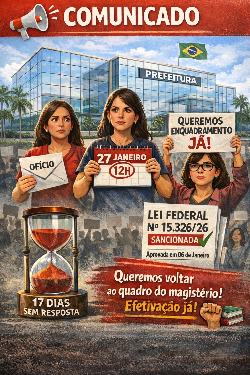 Reforçamos que, durante as negociações da ADIN, o próprio Prefeito afirmou que retornaria nossa categoria à carreira do magistério caso houvesse uma lei federal autorizando. A Lei Federal nº 15.326/26 já foi sancionada e está vigente, restando apenas sua efetivação por parte da Prefeitura.