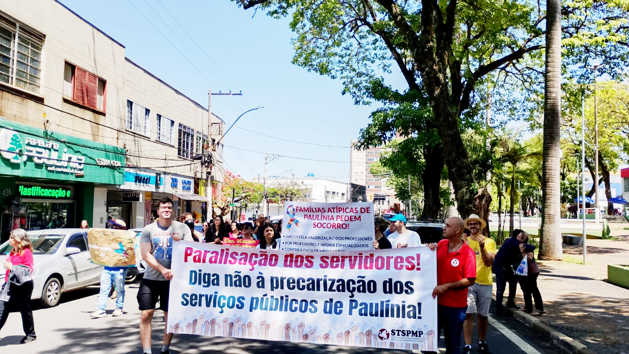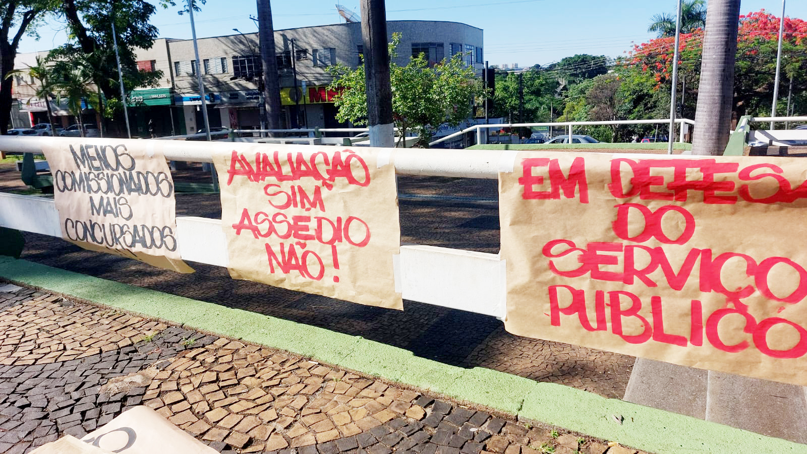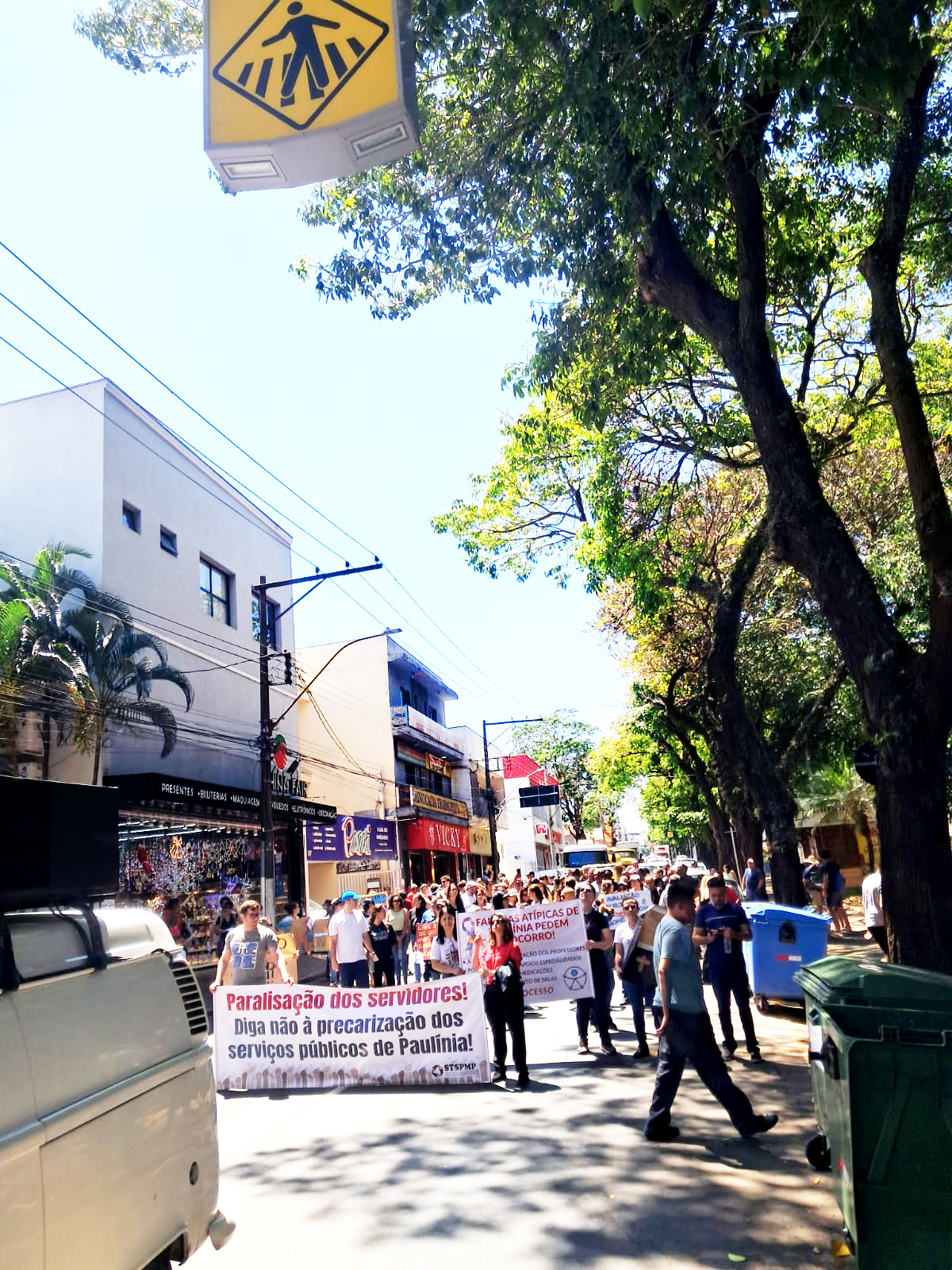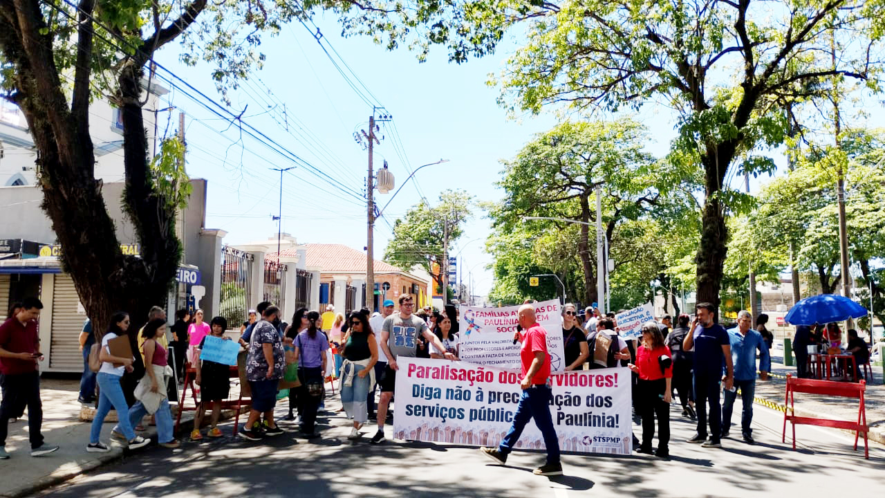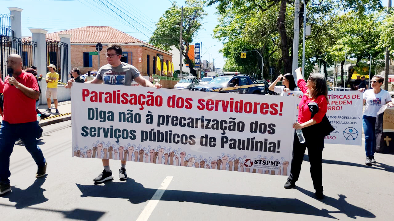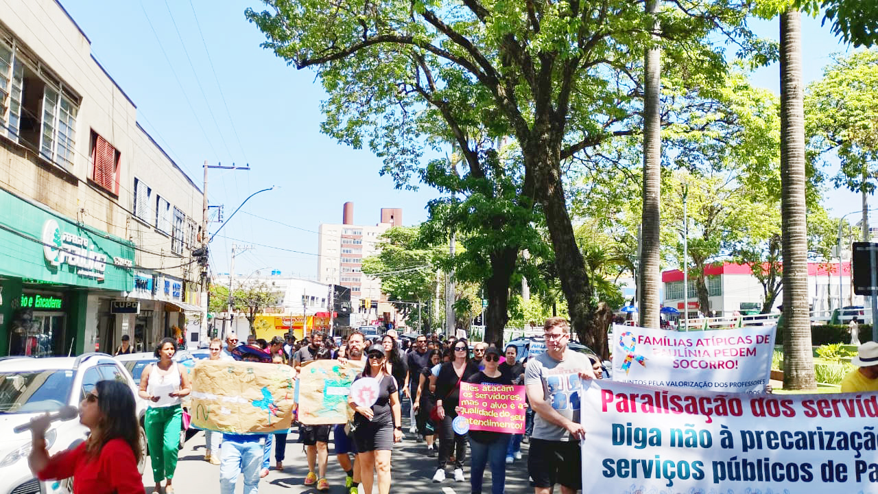 “Servidores, na rua, prefeito a culpa é sua!” | Funcionalismo de Paulínia paralisa atividades em protesto por diálogo