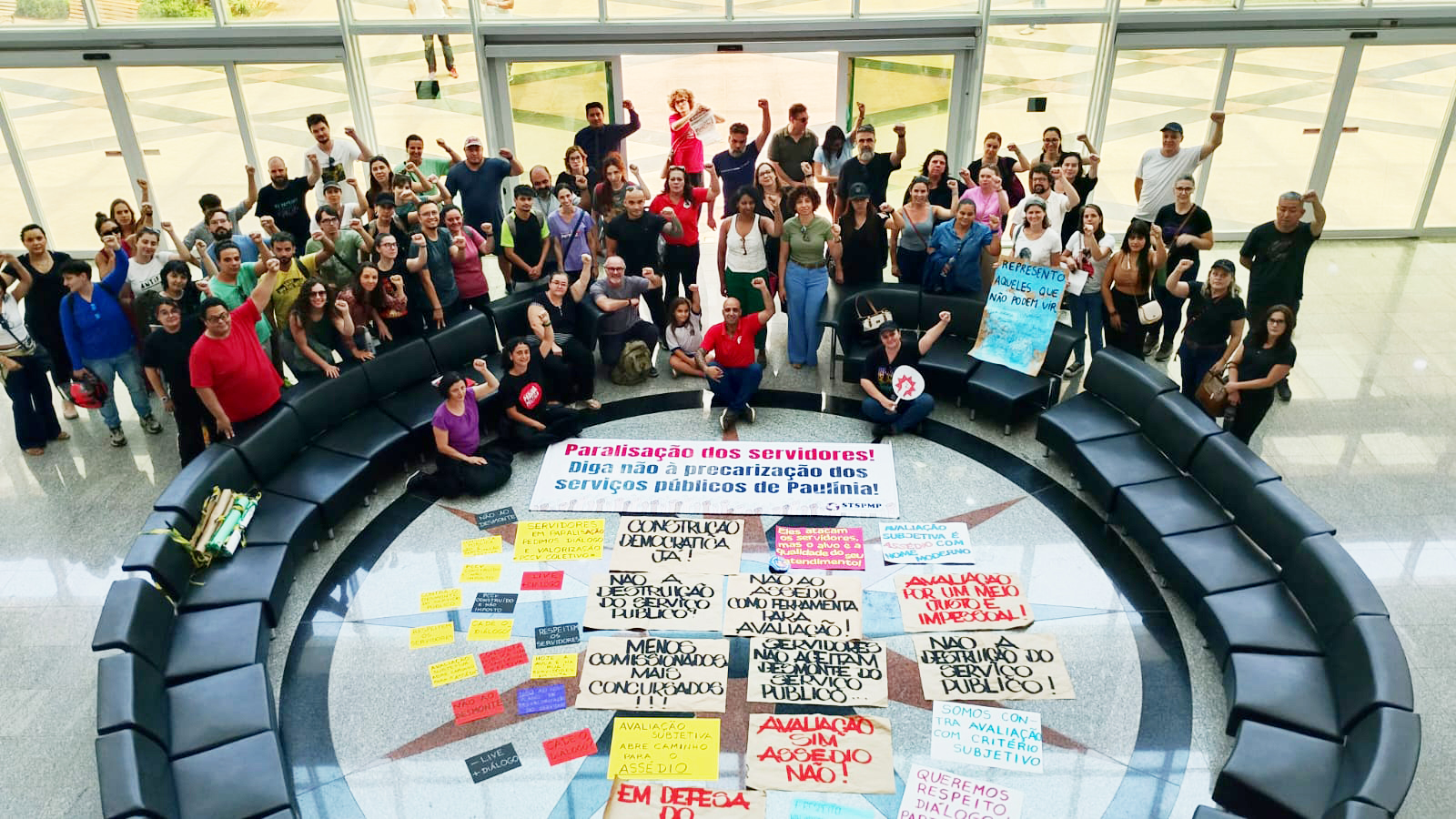 Com faixas erguidas e cartazes que traduziam a indignação da categoria, os servidores realizaram uma concentração maciça e vigorosa. O ato simbolizou um apelo ao Poder Legislativo para que atue como mediador e fiscal, cobrando da prefeitura a abertura de um canal de negociação sério e respeitoso, essencial para a resolução do impasse.