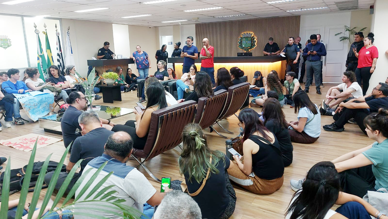 Na parte da tarde, a estratégia de conscientização foi ampliada com uma nova onda de distribuição de panfletos, abrangendo todos os quadrantes do município. O ápice do dia de protestos, porém, ocorreu às 17 horas, quando a mobilização convergiu para as escadarias da Câmara Municipal. O objetivo era claro: angariar o apoio dos vereadores contra o que classificam como um desmando da atual gestão.