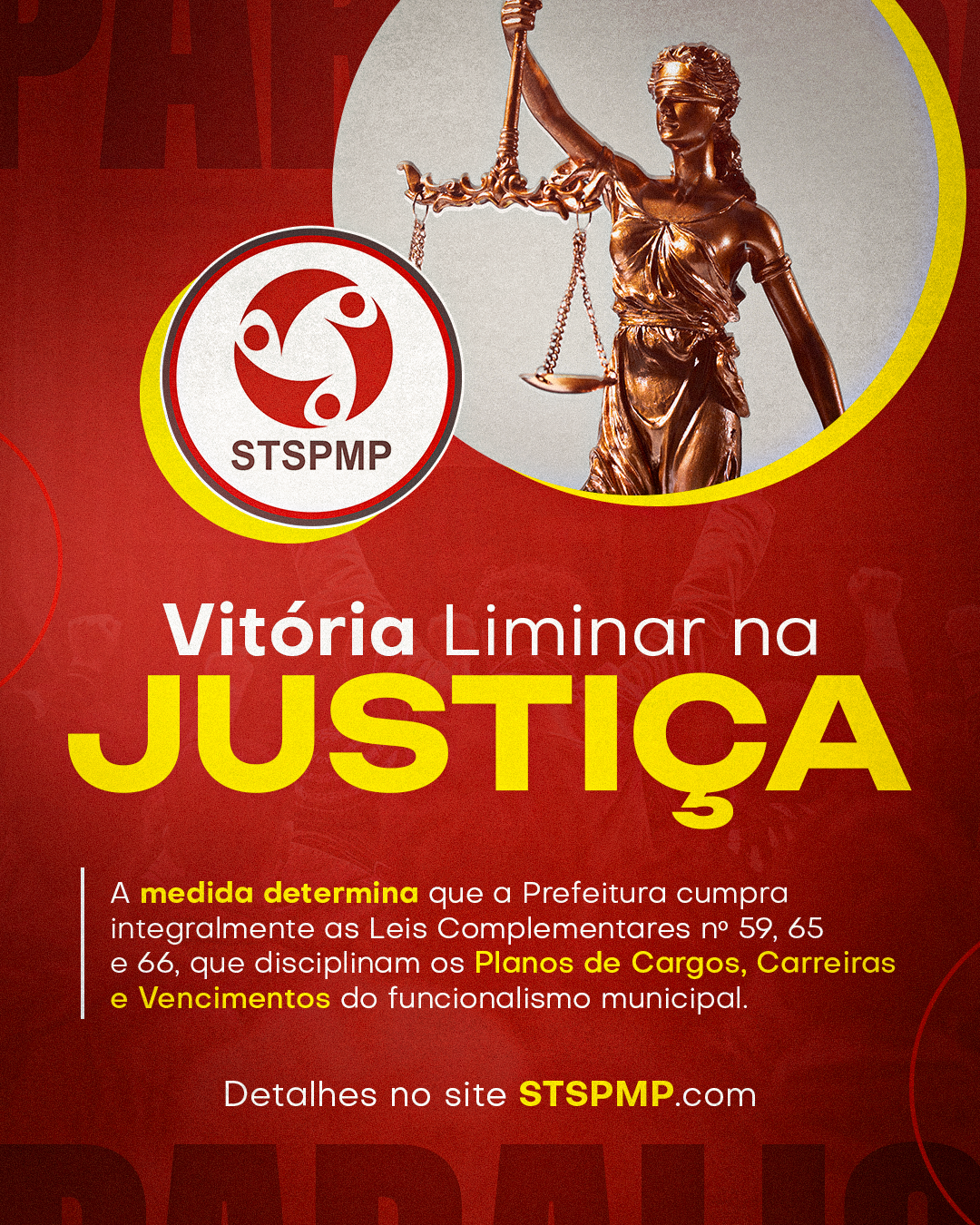 Esta conquista judicial é um triunfo direto da mobilização e da resistência dos Servidores, representados com maestria pelo seu Sindicato. A liminar não apenas assegura um horizonte legal para a progressão na carreira, mas também reafirma o poder da via judicial como instrumento de correção de rumos. O STSPMP permanecerá em vigilância ativa para monitorar o fiel cumprimento da ordem judicial, garantindo que nenhum direito seja novamente postergado. A luta pela dignidade e pelo reconhecimento do funcionalismo público municipal segue mais forte do que nunca.