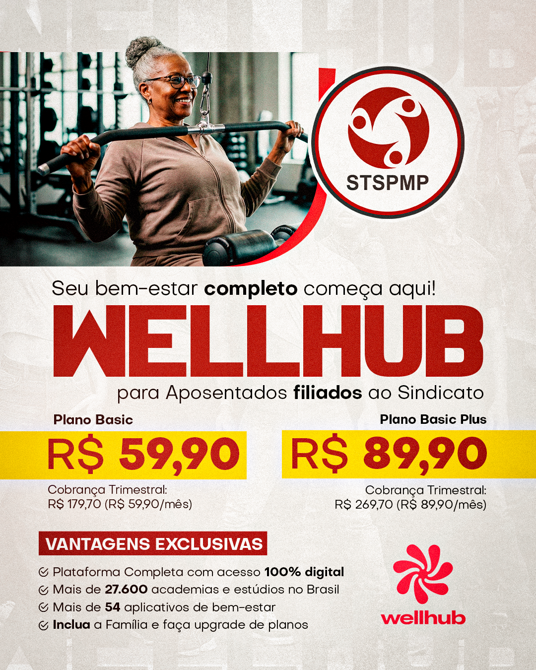 Wellhub (antigo Gympass) | Aposentados associados do STSPMP podem aderir ao benefício a partir de R$ 59,90 ao mês!